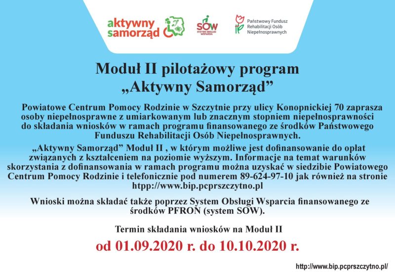Termin składania wniosków na Moduł II od 01.09.2020 r. do 10.10.2020 r.
