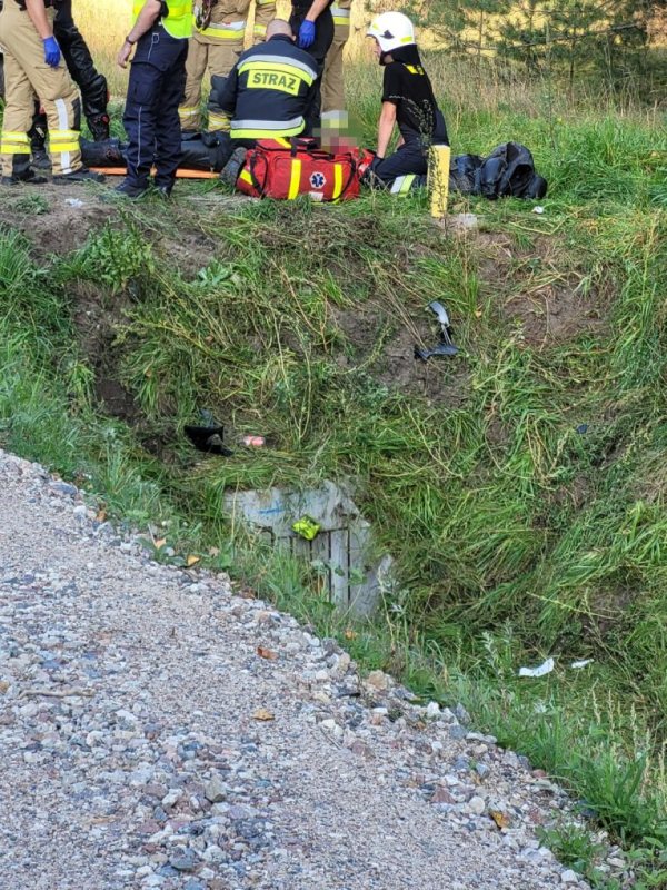 Do wypadku doszło w sobotę, około godz. 16. - 47-latek jechał motocyklem marki honda – mówi sierżant Izabela Cyganiuk ze szczycieńskiej policji. - Z ustaleń funkcjonariuszy pracujących na miejscu zdarzenia wynika, że mężczyzna, na łuku drogi, stracił panowanie nad swoim jednośladem i wjechał do przydrożnego rowu, uderzając przy tym w kolejowy nasyp.