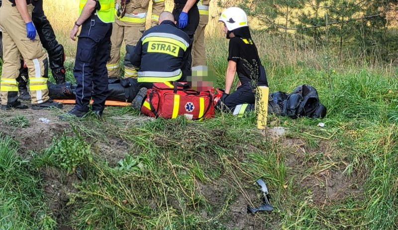 Mieszkaniec Nidzicy doznał poważnych obrażeń ciała. Na ratunek wezwano między innym śmigłowiec Lotniczego Pogotowia Ratunkowego. 47-latek trafił do szpitala.