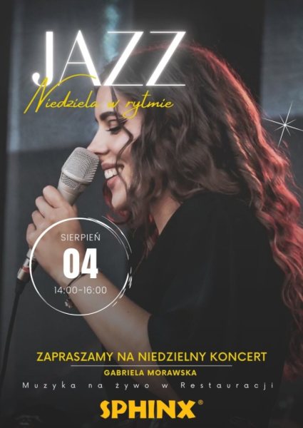 Koncert odbędzie się już w najbliższą niedzielę, 4 sierpnia w restauracji Sphinx Szczytno. Gabriela Morawska w branży muzycznej działa od wielu lat. Obecnie studentka wokalistyki jazzowej na Akademii Muzycznej w Bydgoszczy. Występowała między innymi w projekcie Adama Sztaby.