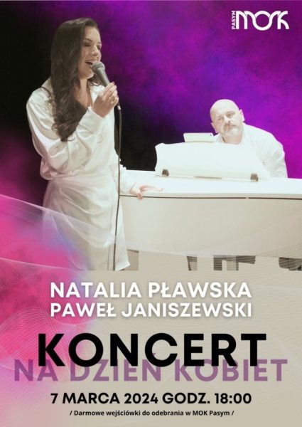 Pasym będzie śpiewać! W Miejskim Ośrodku Kultury w Pasymiu szykuje się wyjątkowe wydarzenie muzyczne, które oczaruje miłośników dobrych brzmień. Natalia Pławska, wokalistka z aksamitnym głosem, wraz z Pawłem Janiszewskim - znanym muzykiem i aranżerem, zapraszają na koncert pełen romantycznych i lirycznych dźwięków.