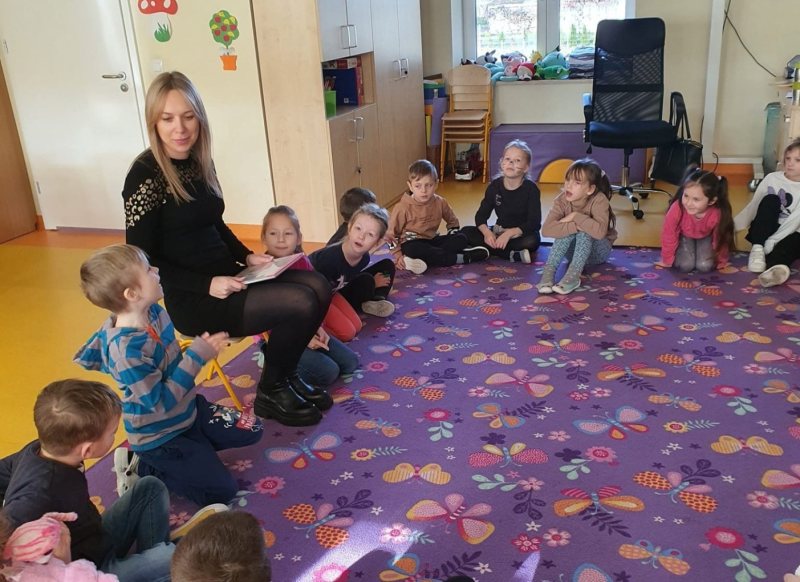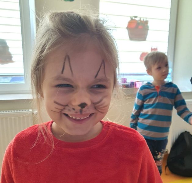 W czasie czytania dzieci zamieniły się w leniwe kotki i leżąc słuchały treści opowiadania. Na koniec spotkania dziewczynki z ZSP w Lipowcu zamieniły dzieci w prawdziwe kociątka malując im buźki.