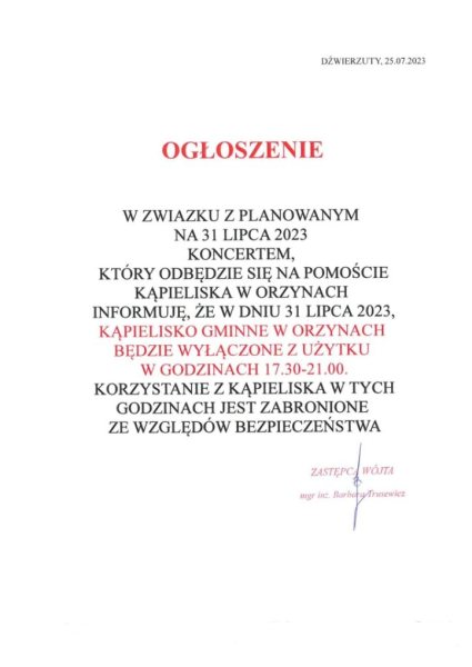 W razie złej pogody, koncert odbędzie się w sali widowiskowej Gminnego Ośrodka Kultury w Dźwierzutach.