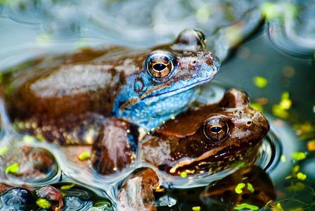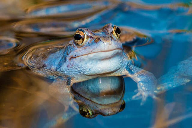 W okresie godowym samce żab przybierają kolor niebieski. Tą niezwykłą godową przemianę udało się sfotografować Hubertowi Jasionowskiemu, znanemu szczycieńskiemu fotografikowi przyrody. Niebieskie żaby, to znak, że zaczyna się wiosna.