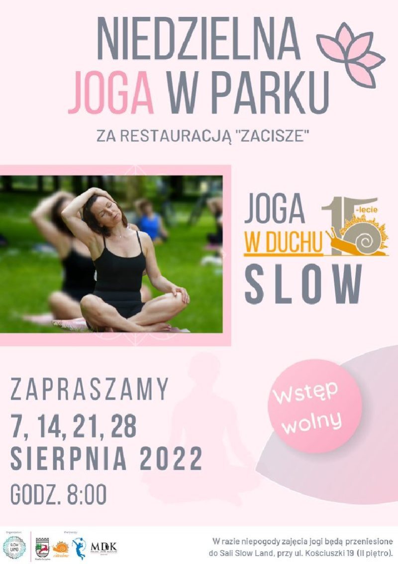 W razie niepogody zajęcia będą przeniesione do Sali Slow Land przy ulicy Kościuszki 19 (II piętro).
