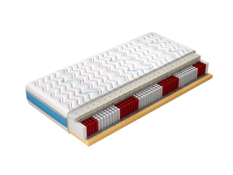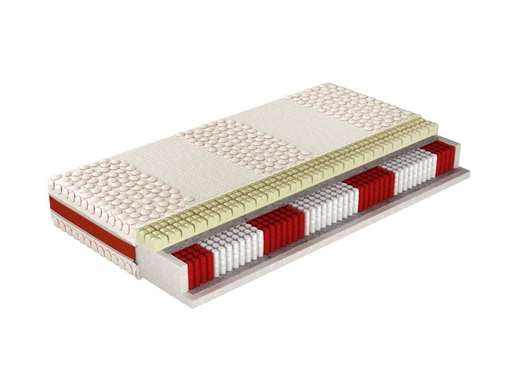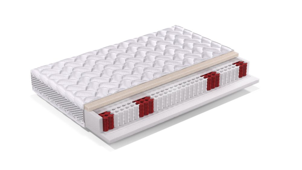 Ale to nie jedyne zalety. Taki materac może mieć jedną stronę twardszą od drugiej, zastosowane inne komponenty o różnych właściwościach. Dzięki temu w łatwy sposób możemy zmienić jego twardość i np. w okresie alergii lub infekcji obrócić na stronę o właściwościach antyalergicznych lub antybakteryjnych.