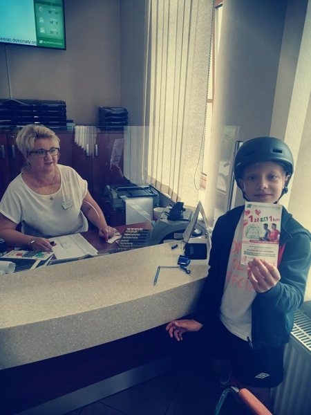 Wspólnie z mamą zaangażował się też w akcję Banku Spółdzielczego w Szczytnie „Kilometry dla Stefanka”.