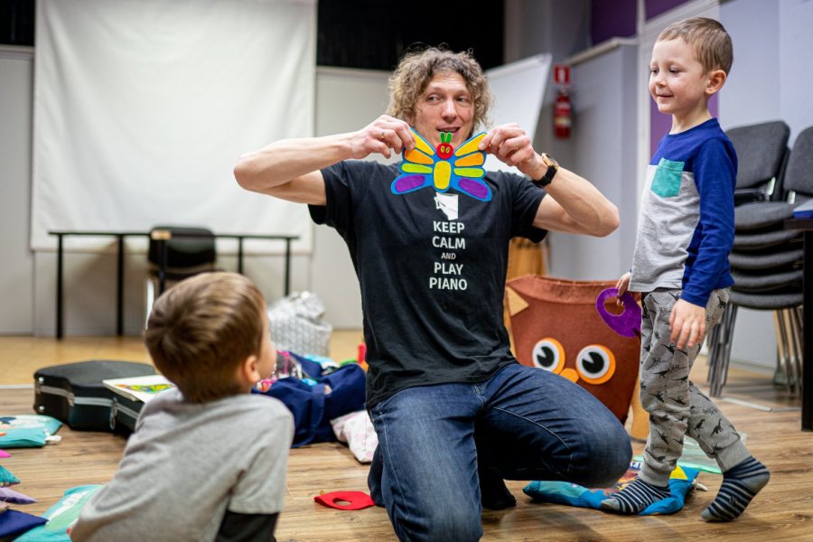 Zajęcia Musical Babies dla dzieci od 6 miesiąca do 3 lat odbywają się w dwóch grupach - porannej w MDK Szczytno oraz popołudniowej w żłobku Siódme Niebo. Natomiast dla dzieci w wieku 3-6 lat Tomasz Banul oferuje zajęcia Musical English, które są idealnym połączeniem nauki języka angielskiego z zabawą. Wszystkie zajęcia są prowadzone w małych grupach, co pozwala na indywidualne podejście do każdego dziecka.