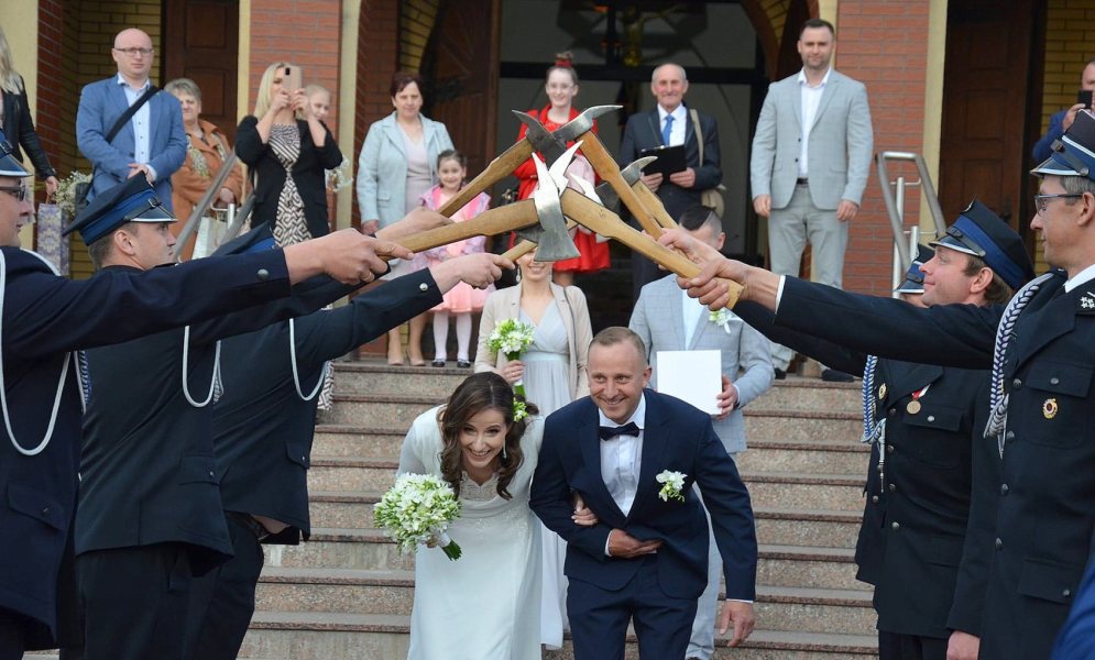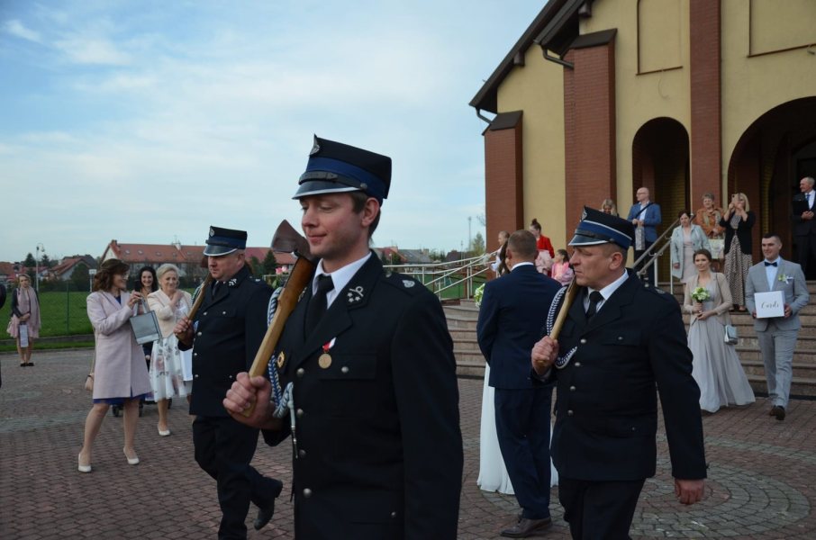 - Oczywiście na ślubie nie mogło nas też zabraknąć – mówi druh Maciej. - W naszej jednostce to już tradycja, że podczas wesel naszych członków druhowie organizują uroczysty szpaler z toporkami strażackim. Bez wątpienia uatrakcyjnia to całe wydarzenie. Naszemu koledze i jego wybrance życzymy wszystkiego najlepszego na nowej drodze życia. Zdjęcia ze ślubu wykonał Hubert Skonieczny – dodaje naczelnik Sypiański.