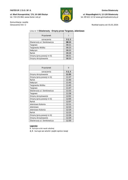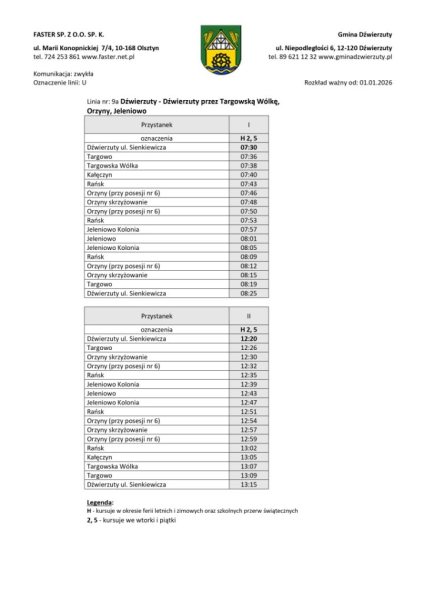 Linia nr 9 - Dźwierzuty - Targowo - Jeleniowo - Orzyny