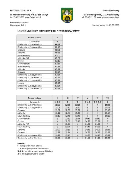Linia nr 4 - Dźwierzuty - Nowe Kiejkuty - Orzyny - Dźwierzuty