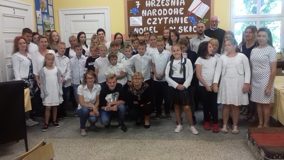 Wspólne czytanie, w piątek 6 września, zainicjowała szkolna biblioteka. Tego dnia lekcje przybrały inny charakter: było odświętnie, patriotycznie i uroczyście, a najważniejszym przedmiotem był język polski. Udział we wspólnej lekcji brały wszystkie klasy, nawet przedszkolaki. Czytali uczniowie, nauczyciele i zaproszeni goście. Z pewnością „żywa” lekcja języka polskiego będzie bardziej zapamiętana niż codzienne szkolne lekcje