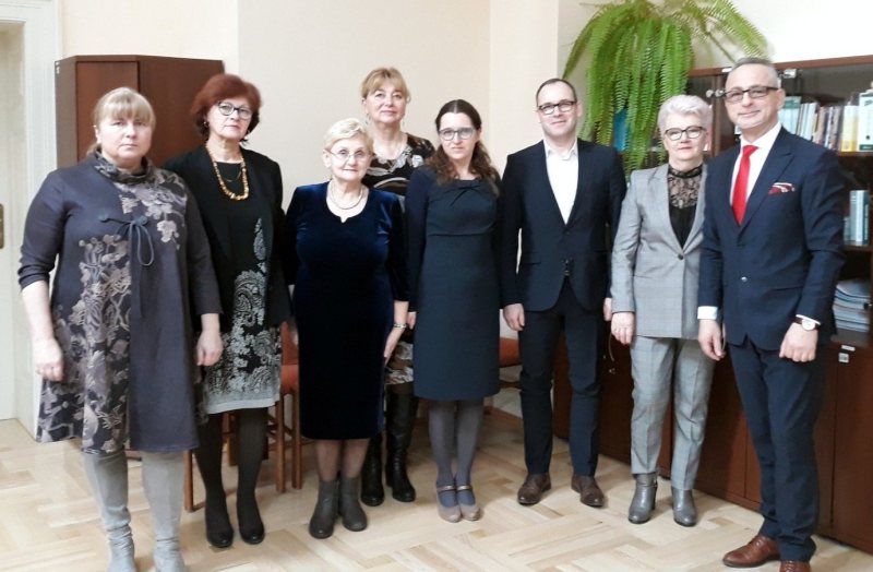 Od lewej: sędzia SR Anna Podubińska, Grażyna Dzbeńska, Irena Mossakowska, Zofia Fila, prezes SR Ewelina Wolny, Rafał Wilczek, Danuta Nowak, Dariusz Podleś.
