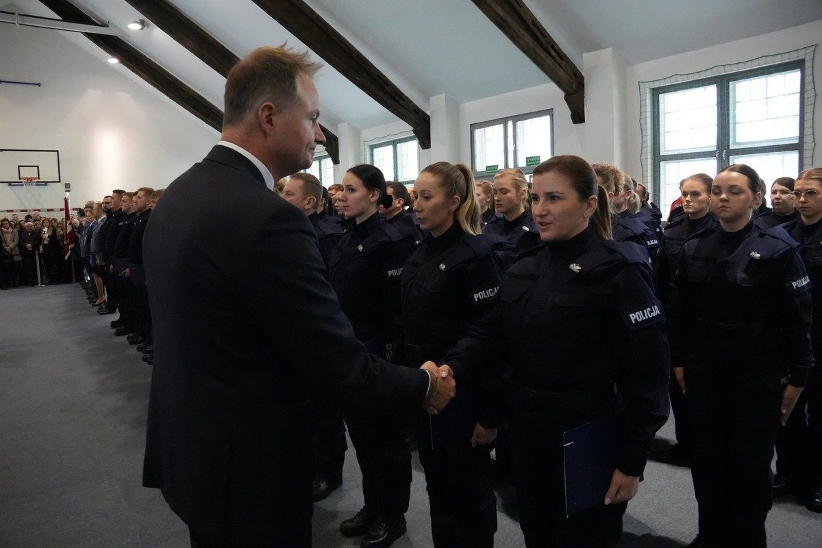 - Bardzo Wam dziękuję, że to, co w Was kiełkowało, spełniło się finalnie dzisiaj. I gratuluję Wam serdecznie. Wielokrotnie, jak ktoś mnie pyta, czy warto wstąpić do Policji, odpowiadam, że warto. Bo jest to służba nietuzinkowa. Służba, w której się przebywa 24 godziny na dobę. Mam nadzieję, że po niełatwym szkoleniu, a potem adaptacji, utwierdzicie się w fakcie, że warto - mówił do nowo przyjętych policjantów insp. Mirosław Elszkowski.