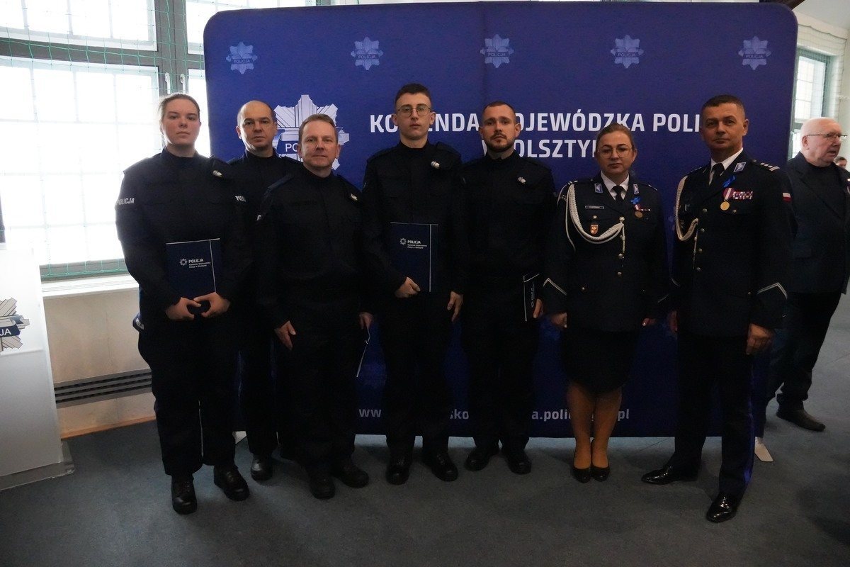 Uroczystość była również okazją do wręczenia medali, wyróżnień oraz awansów na wyższe stopnie służbowe. Decyzją Ministra Spraw Wewnętrznych i Administracji za wybitne zasługi w dziedzinie realizacji ustawowych zadań policji, złotym medalem "Za zasługi dla Policji" odznaczony został generał brygady Straży Granicznej Daniel Wojtaszkiewicz, a brązowymi medalami: Jerzy Kowalewicz - prezes zarządu Oddziału Wojewódzkiego Stowarzyszenia Emerytów i Rencistów Policyjnych, Lucjan Fiedorowicz - prezes Koła Terenowego w Lidzbarku Warmińskim Stowarzyszenia Emerytów i Rencistów Policyjnych oraz Joanna Rosińska - wiceprzewodnicząca Krajowej Komisji Wykonawczej NSSZ Pracowników Policji. Brązową odznakę "Zasłużony Policjant" nadano dwóm policjantom.