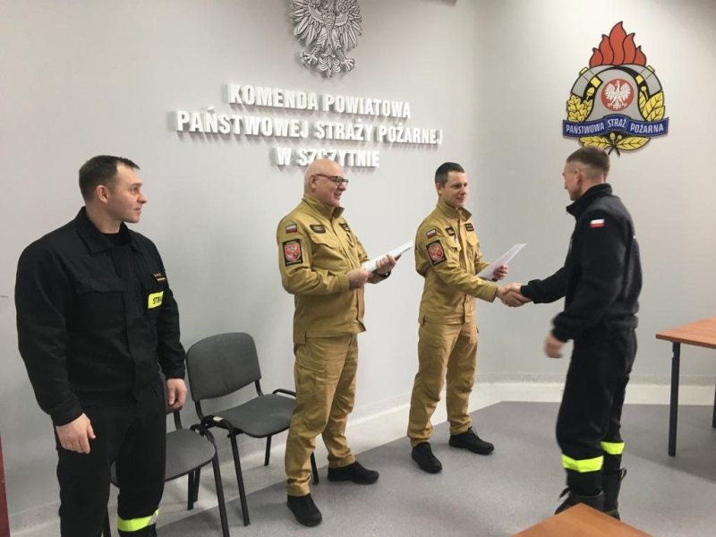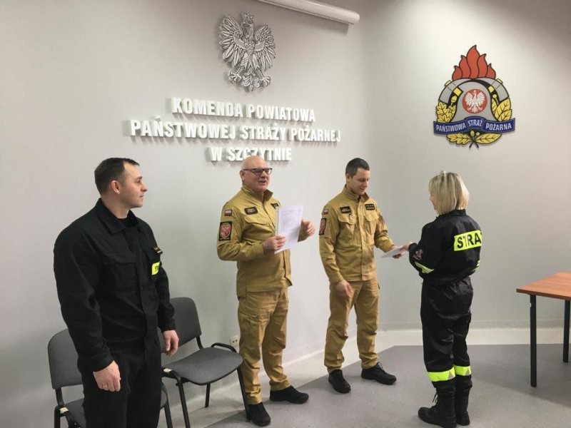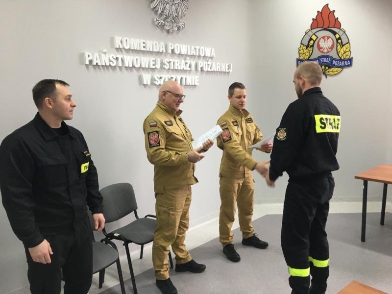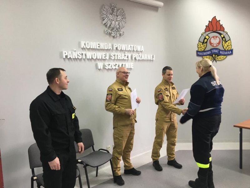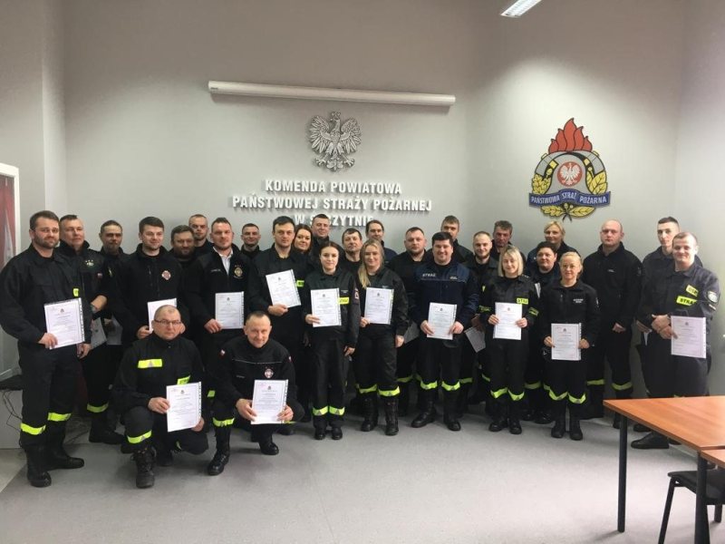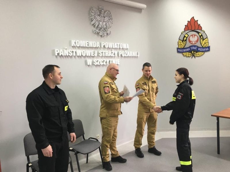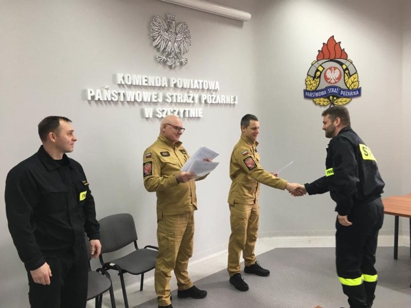 - Kurs trwał od 17 marca do 1 kwietnia – mówi kapitan Łukasz Wróblewski z KP PSP w Szczytnie. - Komisja egzaminacyjna, składająca się z funkcjonariuszy KP PSP w Szczytnie i przedstawiciela Komendanta Wojewódzkiego PSP w Olsztynie, przeprowadziła egzamin składający się z 30 pytań.