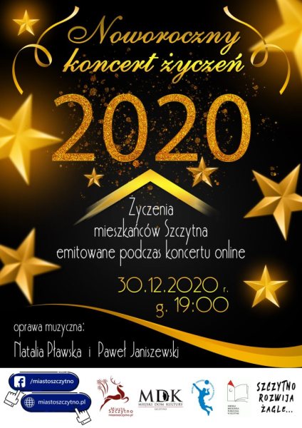 Zapraszamy na wyjątkowy koncert podczas, którego emitowane będą życzenia noworoczne nadesłane przez mieszkańców Szczytna, a o oprawę muzyczną zadbają Natalia Pławska i Paweł Janiszewski.
