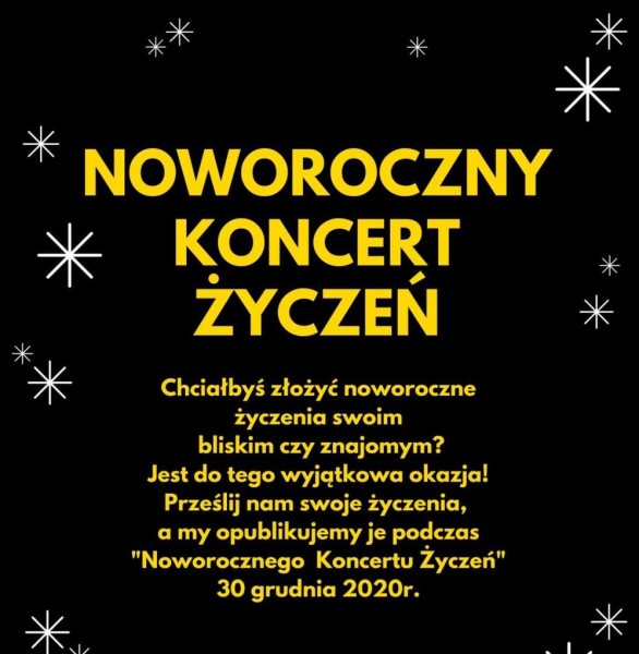Każdy mieszkaniec Szczytna może w tym roku złożyć swoim bliskim życzenia noworoczne podczas „Noworocznego Koncertu Życzeń”. Koncert będzie transmitowany online między innymi na profilach internetowych Miasta Szczytno, Miejskiego Domu Kultury w Szczytnie, czy „Tygodnika Szczytno”. Organizatorzy uruchomili już specjalny adres mailowy, pod który można słać życzenia. Sprawdź szczegóły akcji.