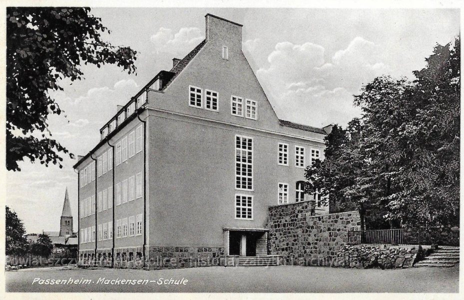 W 1924 r. szkoła została rozbudowana. 9 września 1929 r. nadano jej imię feldmarszałka Augusta von Mackensena. Sam Mackensen odwiedził Pasym 29 września 1929 r.