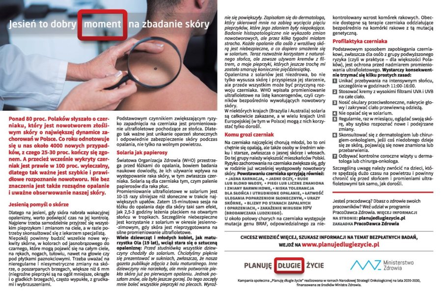 Kampania społeczna „Planuję długie życie” realizowana w ramach Narodowej Strategii Onkologicznej na lata 2020-2030, finansowana ze środków Ministra Zdrowia.