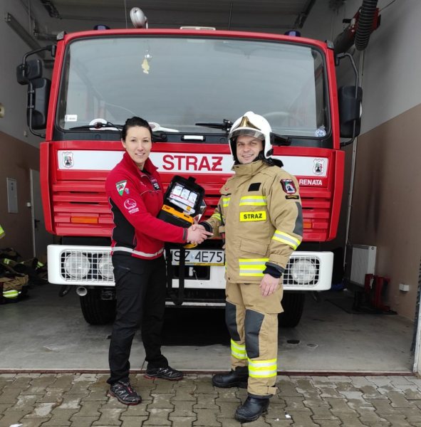 - Wciąż zacieśniamy naszą współpracę z OSP Szczytno. W środę, 2 lutego przekazaliśmy w użyczenie defibrylator LIFEPAK 1000, który jest jednym z najbardziej wytrzymałych defibrylatorów AED i może przesądzić o pomyślnym wyniku interwencji ratującej życie u pacjenta z nagłym zatrzymaniem krążenia - relacjonuje Agnieszka Siemieniuk z Fundacji Autrimpus.