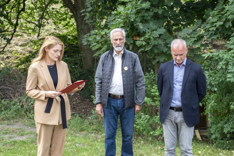 W uroczystości udział wzięli bliscy Emila Leyka - syn Wiktor i wnuczki, a także władze samorządowe z powiatu szczycieńskiego.