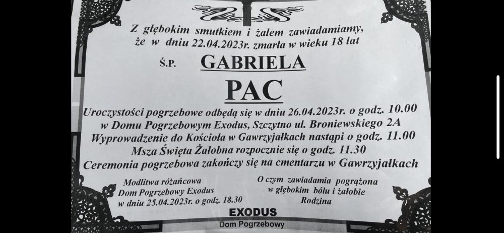 Są pożegnania, na które nigdy nie będziemy gotowi. I są takie osoby na myśl, o których zawsze zasypie nas lawina wspomnień. Gabrysia - Zespół Szkół nr 2 w Szczytnie żegna swoją uczennicę... Gabrysia przegrała z ciężką chorobą. Miała zaledwie 18 lat. Więcej na ten temat w papierowym wydaniu "Tygodnika Szczytno". Fot. ZS2 w Szczytnie.