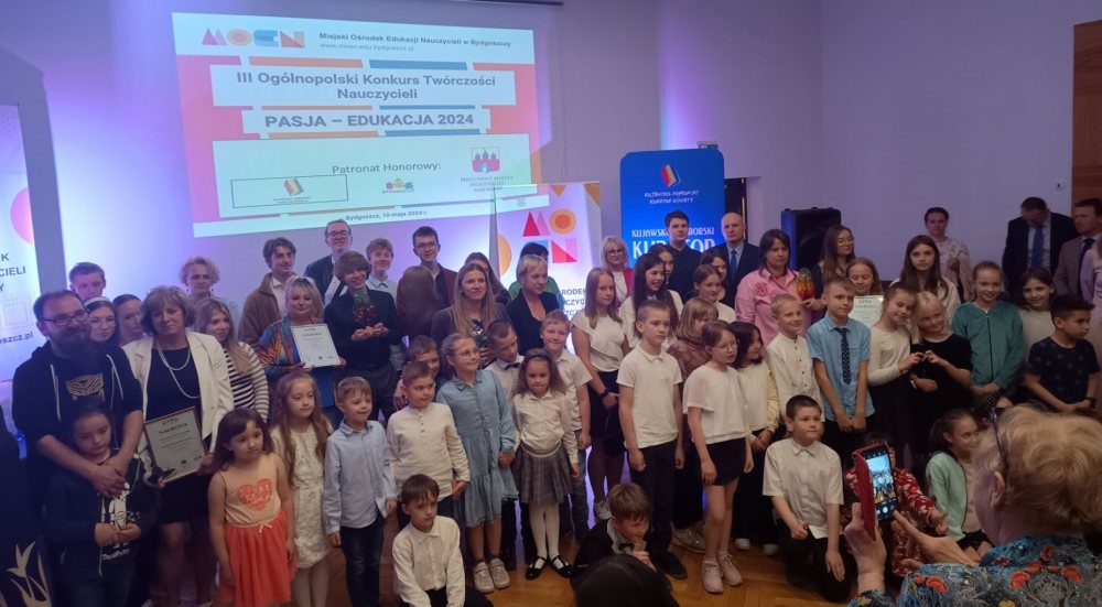 W piątek, 10 maja 2024 r. w Miejskim Ośrodku Edukacji Nauczycieli w Bydgoszczy miała miejsce uroczysta gala rozdania nagród laureatom III Ogólnopolskiego Konkursu Twórczości Nauczycieli PasJA-Edukacja 2024. Konkurs odbywał się pod honorowym patronatem Kujawsko-Pomorskiego Kuratora Oświaty oraz Prezydenta Miasta Bydgoszczy. Na gali byli obecni dyrektor Szkoły Podstawowej nr 6 im. Orła Białego w Szczytnie Ewa Bakalarska, nauczyciel historii Przemysław Bugaj, uczeń kl. VIII A Oliwier Bukowski oraz jego tata Michał Bukowski.