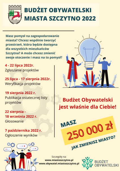- każdy zgłaszany projekt musi mieć co najmniej 20 popisów poparcia od mieszkańców Szczytna.