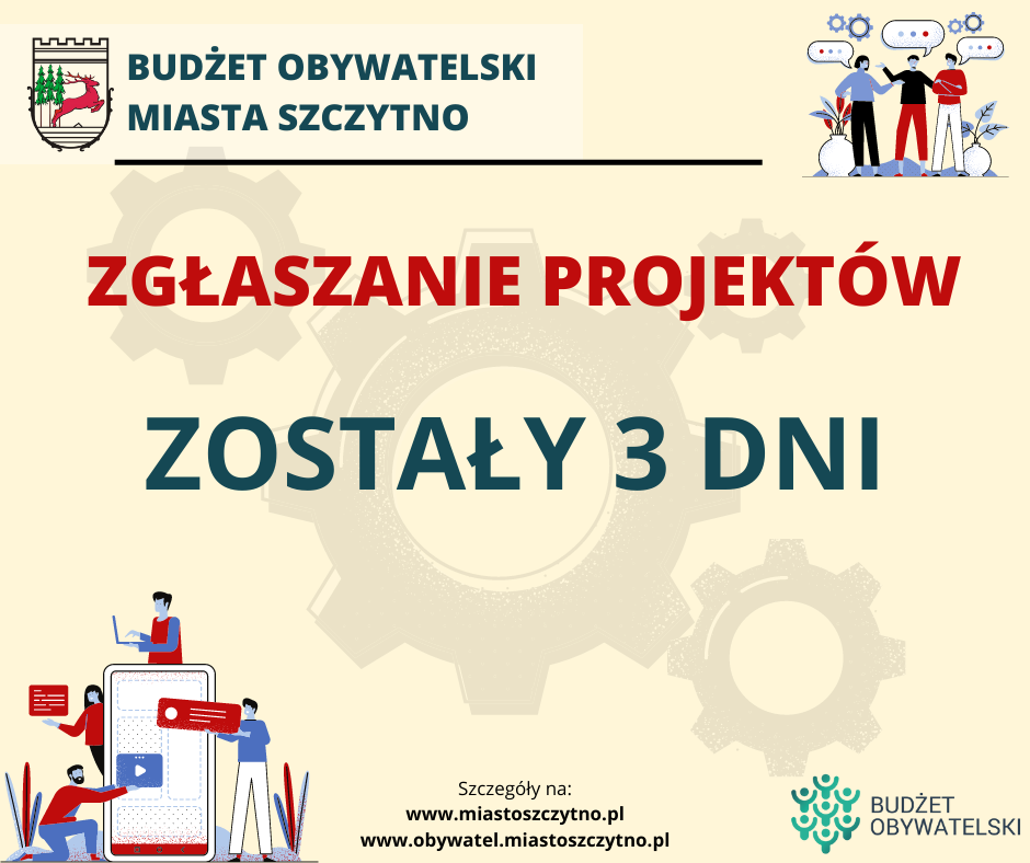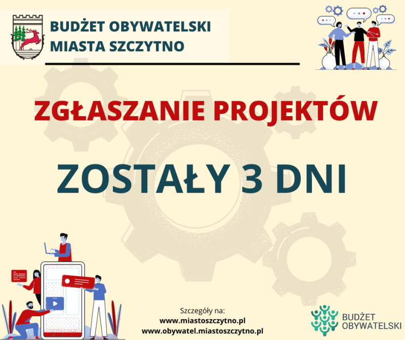 Projekty można zgłaszać do piątku, 22 lipca do godz. 15:30 w Biurze Obsługi Interesanta w Urzędzie Miejskim w Szczytnie. Formularz wraz z listą poparcia projektu dostępne są: