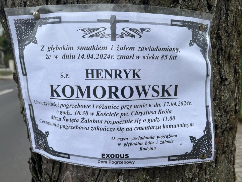 W niedzielę, 14 kwietnia, w wieku 85 lat odszedł Henryk Komorowski. Był to znany społecznik oraz wieloletni prezes Stowarzyszenia Uniwersytet Trzeciego Wieku w Szczytnie. Uroczystości pogrzebowe odbędą się w środę, 17 kwietnia.