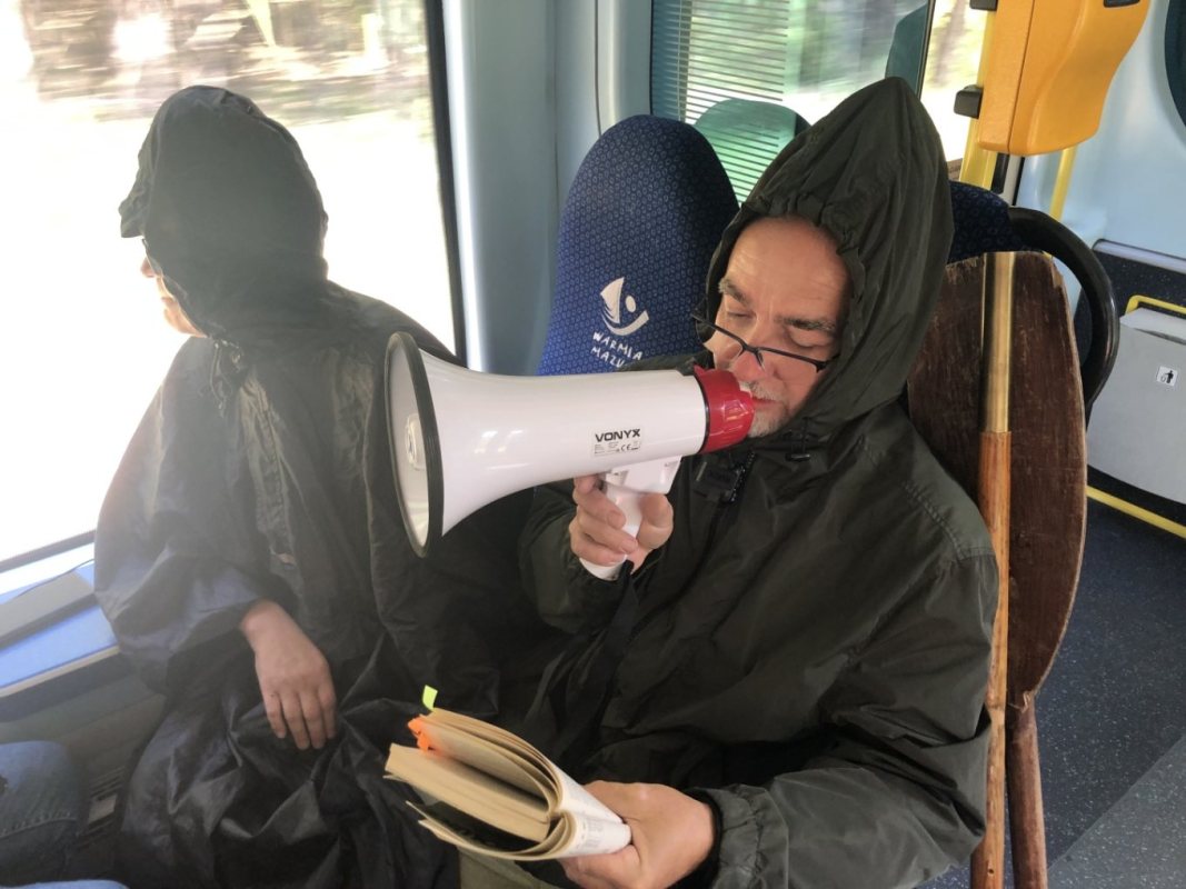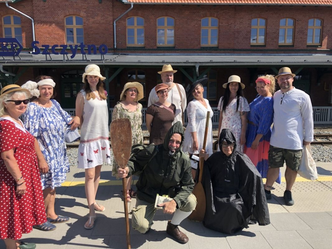 Podróż mija przy lekturze, pasażerowie lekko zdziwieni sytuacją, ale raczej zasłuchani. Gdy wysiadamy na dworcu w Spychowie, słychać dźwięki orkiestry dętej i widać delegację, leśną brać z transparentem z napisem „Pupy witają Melchiora Wańkowicza”. Następnie odbieramy specjalnie przygotowany kajak „Kuwaka” - na wzór tego z książki – i maszerujemy z nim w stronę Jeziora Spychowskiego.