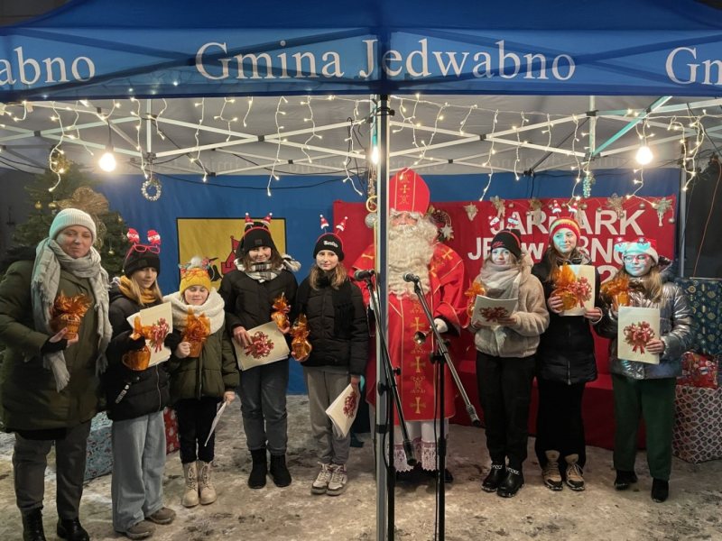 Na gości czekały: ścianka do zdjęć z Mikołajem, warsztaty malowania torebek świątecznych, książkowe animacje Gminnej Biblioteki Publicznej, stoiska lokalnych rękodzielników, stoiska z miodem i wędlinami, stoisko kulinarne Klubu Seniora „Złota Jesień” oraz Gminnego Koła Gospodyń Wiejskich w Jedwabnie.