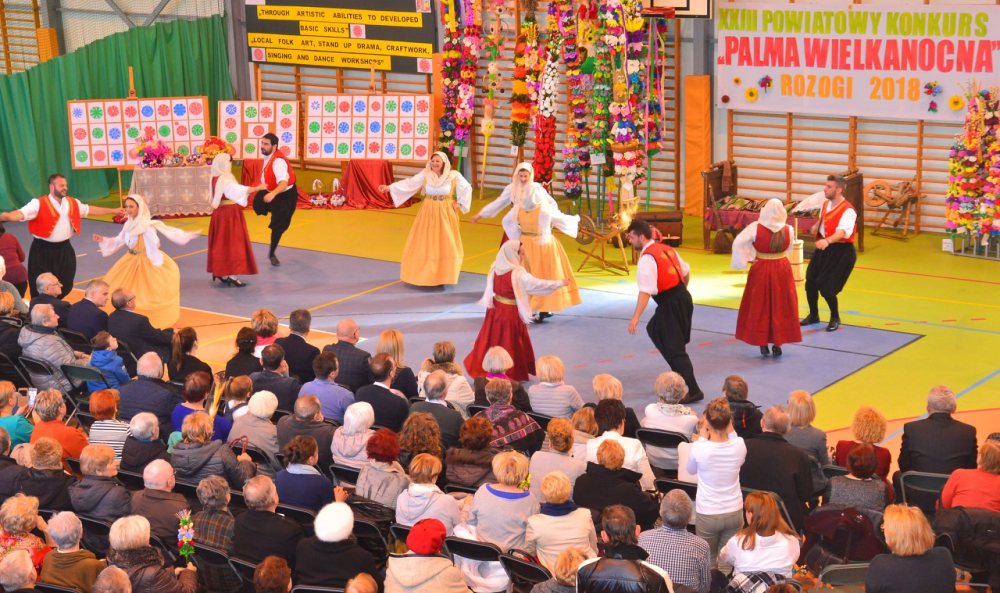 Niewątpliwą atrakcją artystycznej oprawy konkursu były występy grup folklorystycznych z Grecji i Chorwacji. Te dwa państwa plus Słowenia, wraz z rozoskim gimnazjum uczestniczą w międzynarodowym projekcie, którego poszczególne etapy odbywają się w różnych krajach partnerskich. Tak się złożyło, że Rozogi gościli u siebie zagranicznych kolegów w czasie, gdy odbywał się konkurs palm, na czym wszyscy skorzystali.