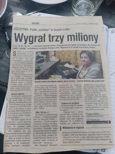 Bo w ogródku przy niej była rzucona podkowa na szczęście (śmiech). Dokładnie wiem gdzie, bo sama ją znajdowałam podczas porządków. Mówiąc już całkiem poważnie, chyba chodziło o to, że zwyczajnie grało dużo osób i prawdopodobieństwo wygranej było większe. Tym bardziej, że kiedyś ludzie dużo częściej skreślali swoje liczby lub grali zaawansowanymi systemami. Dziś jest z tym trochę inaczej. Zmienił się też sam Totalizator. Kolektura była też blisko dworca po drodze na największe w Szczytnie osiedle bloków. To chyba miało bardzo duże znaczenie wtedy.