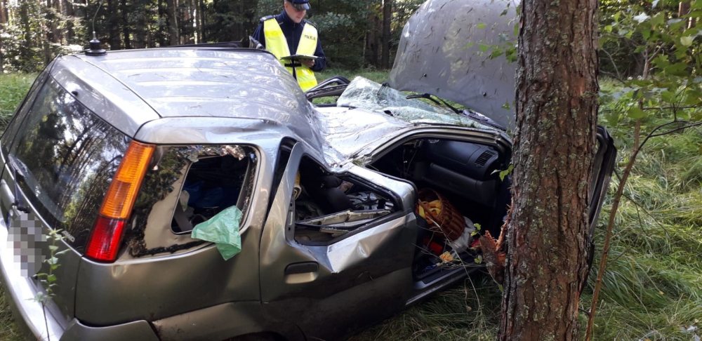 - Bez wątpienia mieli mnóstwo szczęścia – komentuje druh Krzysztof Nikadon z OSP Jedwabno. - wypadek wyglądał bardzo groźnie. Drzewo dotykało krawędzi drzwi.