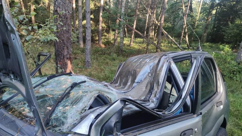 Do zdarzenia doszło po godz. 7. Para 70-latków z powiatu nidzickiego jechała subaru. Na łuku drogi w okolicy Czarnego Pieca ich samochód wypadł z drogi i uderzył dachem w drzewo. Przód dachu wbił się dosłownie w fotele. Jakim cudem para wyszło z tej kraksy ze stosunkowo niewielkimi obrażeniami? Na to pytanie nie są w stanie odpowiedzieć ani ratownicy, ani inni kierowcy, którzy pomagali poszkodowanym wydostać się z wraku auta.