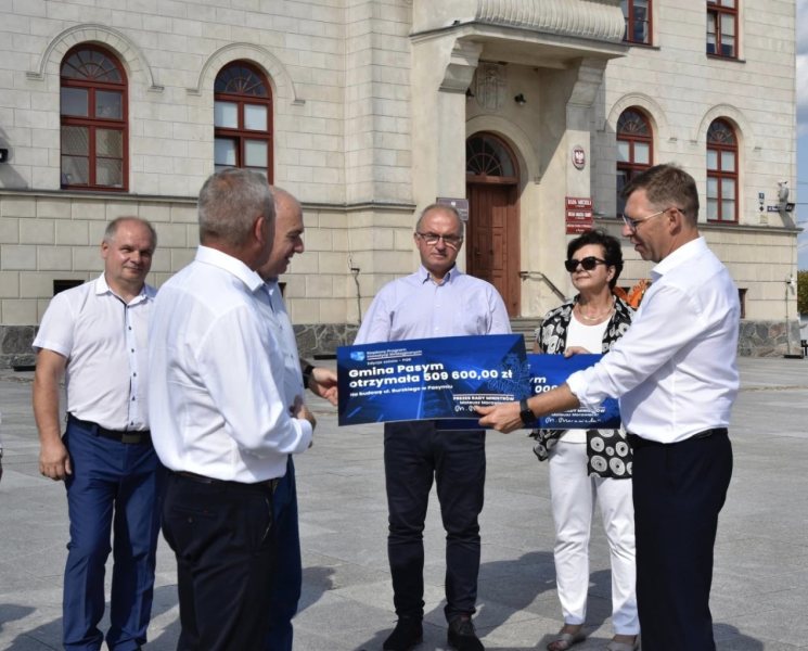 Pasym odebrał dziś symboliczne czeki o wartości ponad 2,5 mln zł. Pieniądze mają pójść na budowę dwóch dróg, a pochodzą z VI edycji Rządowego Programu Inwestycji Strategicznych, który wspiera gminy popegeerowskie.