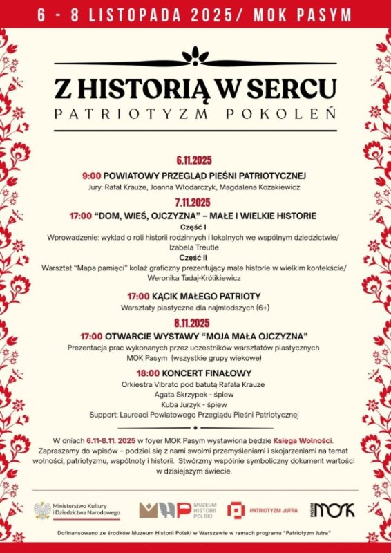 W Pasymiu rusza wyjątkowy cykl wydarzeń pod wspólnym tytułem „Z historią w sercu. Patriotyzm pokoleń”. To trzy dni, które połączą muzykę, wspomnienia i spotkania ludzi, dla których słowo Ojczyzna wciąż brzmi mocno i osobiście.