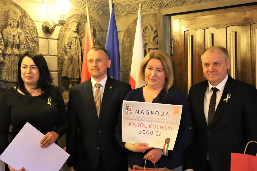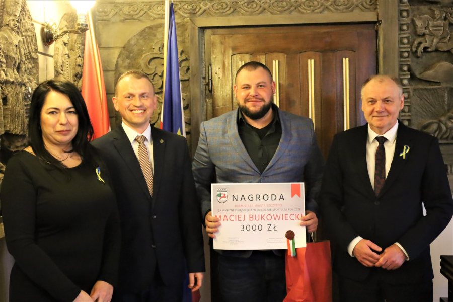 Jolanta Pazurkiewicz (bowling), Karol Kijewski (pchnięcie kulą) i Maciej Bukowiecki (trener lekkiej atletyki) otrzymali nagrody burmistrza za wybitne osiągnięcia w dziedzinie sportu za 2021 rok.