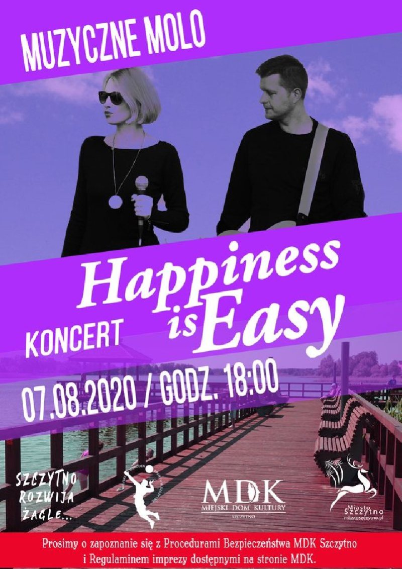 Duet: HAPPINESS IS EASY wystąpi w piątek, 7 sierpnia na molo w Szczytnie w ramach koncertów z cyklu „Muzyczne Molo”. Początek godz. 18. Wstęp wolny.