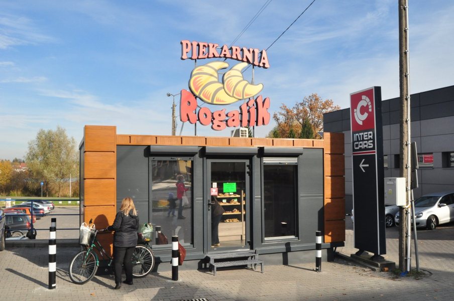 Ale nie tylko samą piekarnię unowocześnia Gminna Spółdzielnia “Samopomoc Chłopska” w Szczytnie. Spółdzielnia inwestuje też w nowe punkty sprzedaży. Jeden z nich stanął przy ulicy Pasymskiej. Kolorowe logo Rogalika oraz zamach świeżego pieczywa kusi kupujących.