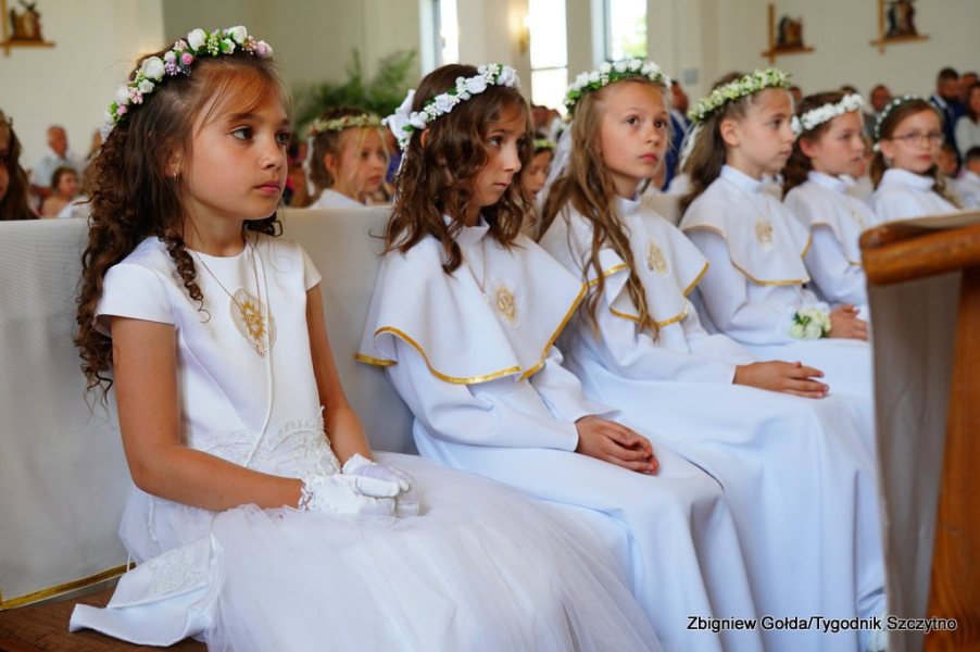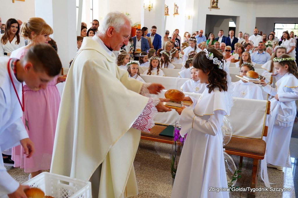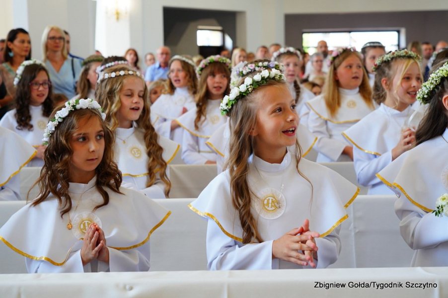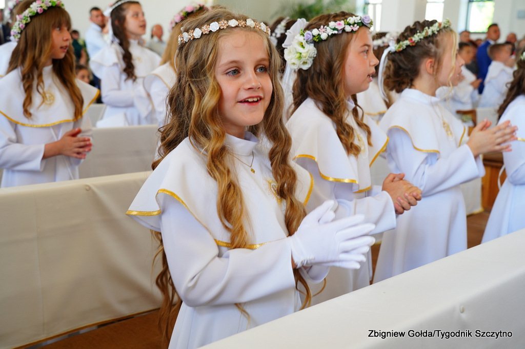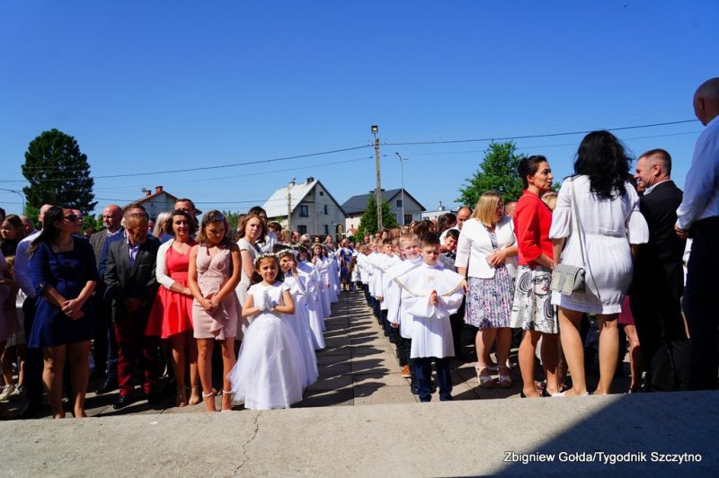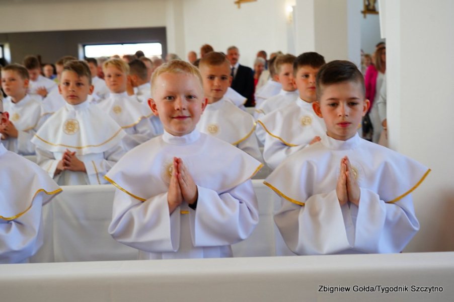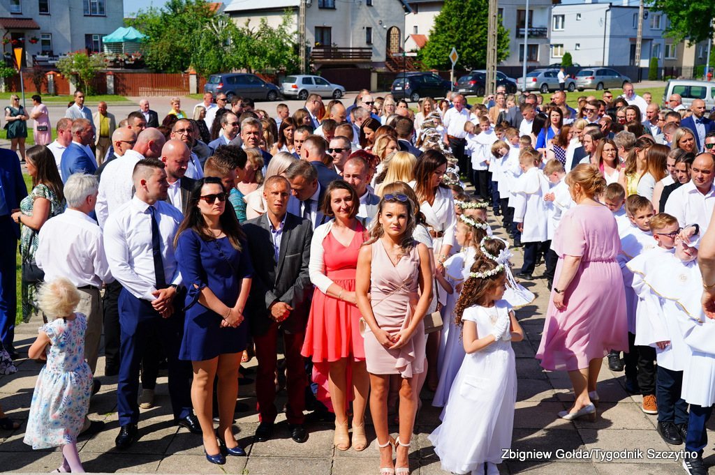 Tak to wydarzenie wyglądało w obiektywie Zbigniewa Gołdy. Zdjęcia grupowe dzieci pierwszokomunijnych zostaną opublikowane w środowym, papierowym wydaniu „Tygodnika Szczytno”.