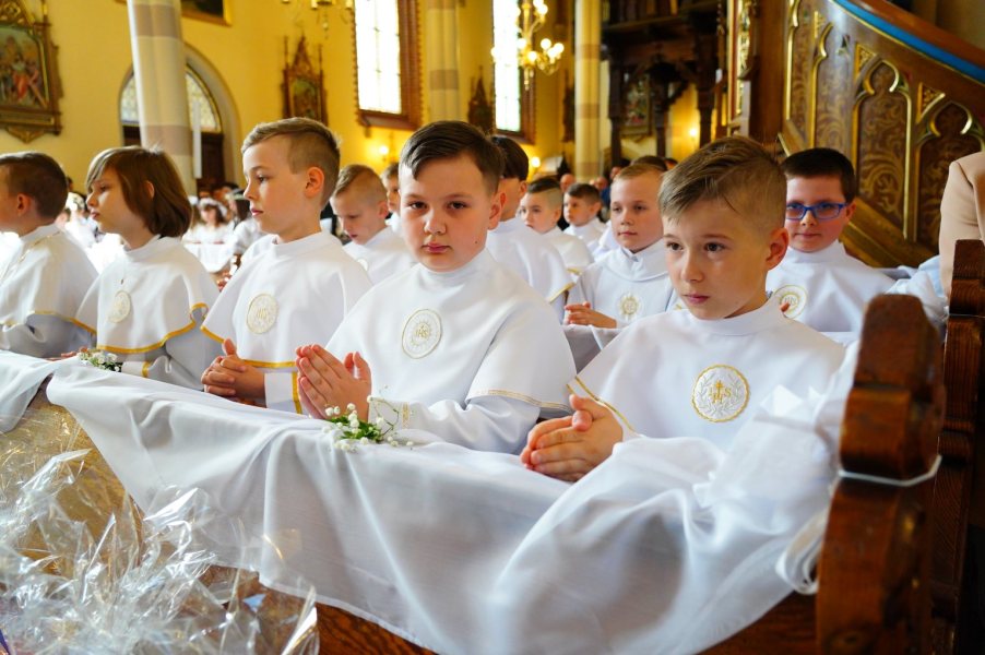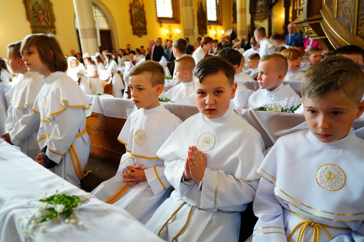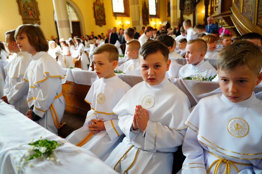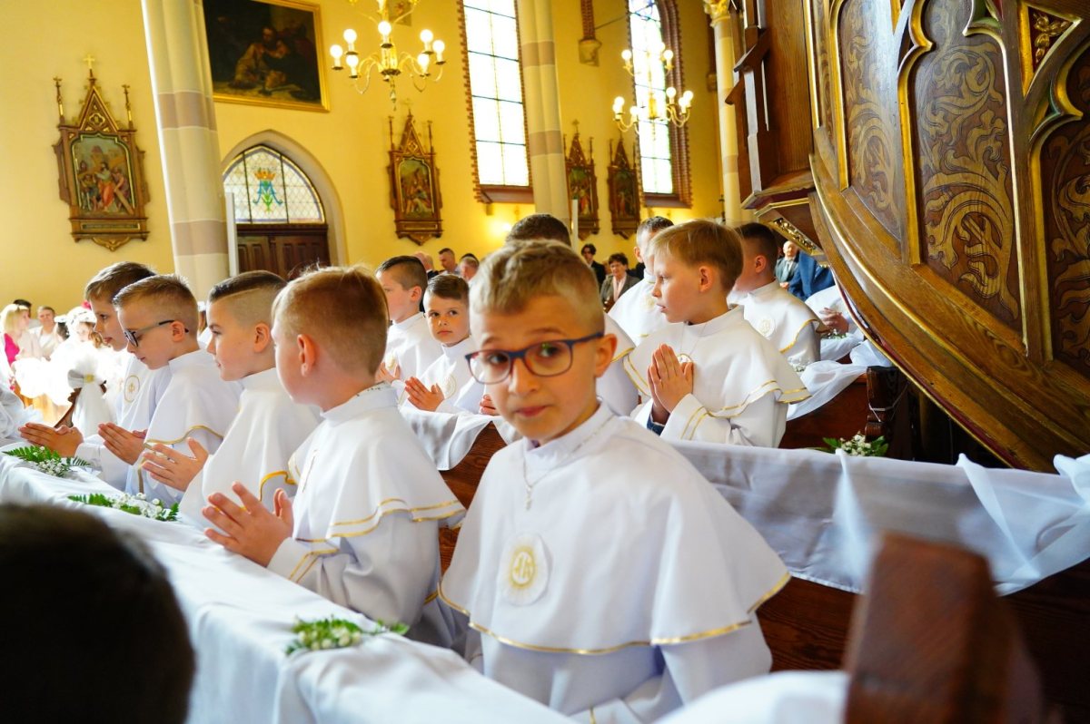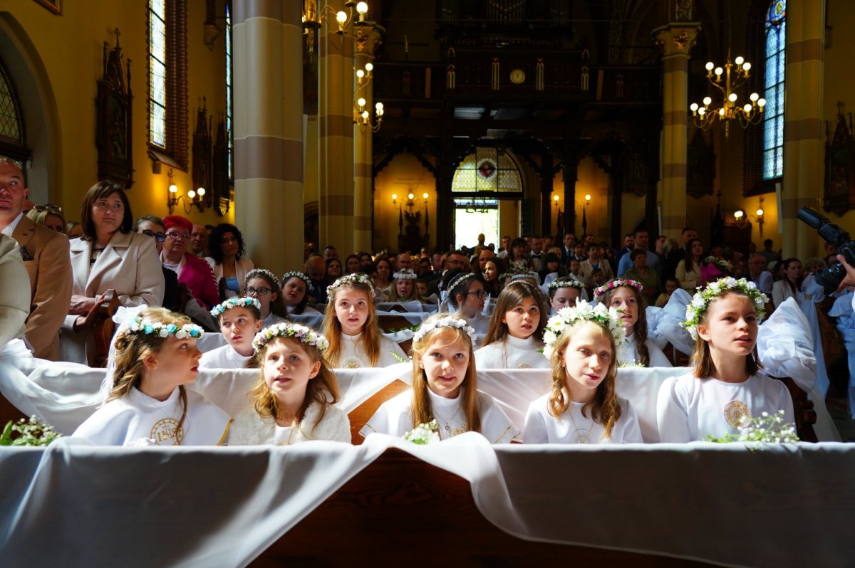 Miesiąc maj to czas przyjmowania Pierwszej Komunii Świętej przez uczniów klas III szkół podstawowych. Tak to wydarzenie wyglądało w kościele WNMP w Szczytnie. Zdjęcia wykonał Zbigniew Gołda.
