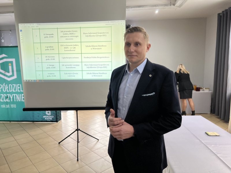 Rozpoczęło się właśnie kolejne spotkanie w ramach Programu Pierwsza Liga Biznesu. Przedsięwzięcie realizuje Bank Spółdzielczy w Szczytnie. To cykl spotkań z ekspertami, którzy mają pomóc przedsiębiorcom prowadzić biznes we współczesnym świecie. Temat dzisiejszego spotkania to „ESG w biznesie (mikro, MSP) – co i jak komunikować”.