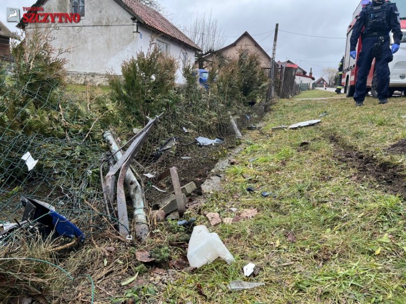 Do bardzo niebezpiecznego zdarzenia doszło w Romanach. Kompletnie pijany kierowca najpierw przez kilkanaście metrów pędził chodnikiem, a potem „ściął” ogrodzenie i uderzył w budynek. To 63-letni mieszkaniec Szczytna. „Wydmuchał” niemal 2,5 promila alkoholu.