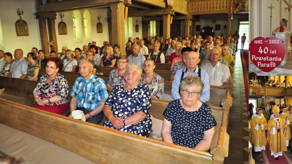 Ksiądz arcybiskup, ja, ksiądz Adam Łukowski (pochodzący z naszej parafii), siostra Błażeja (przełożona prowincjalna sióstr Świętej Katarzyny), Stanisława Drężek (mieszkanka Rozóg i jedna z uczestniczek przejęcia kościoła, która ma dziś ponad 90 lat), najstarszy parafianin Zdzisław Szydłowski (94 lata) oraz pani Iwona Jędrzejczyk, nasza parafianka, która urodziła się dokładnie 25 czerwca 1982 roku, czyli w dniu utworzenia naszej samodzielnej parafii.