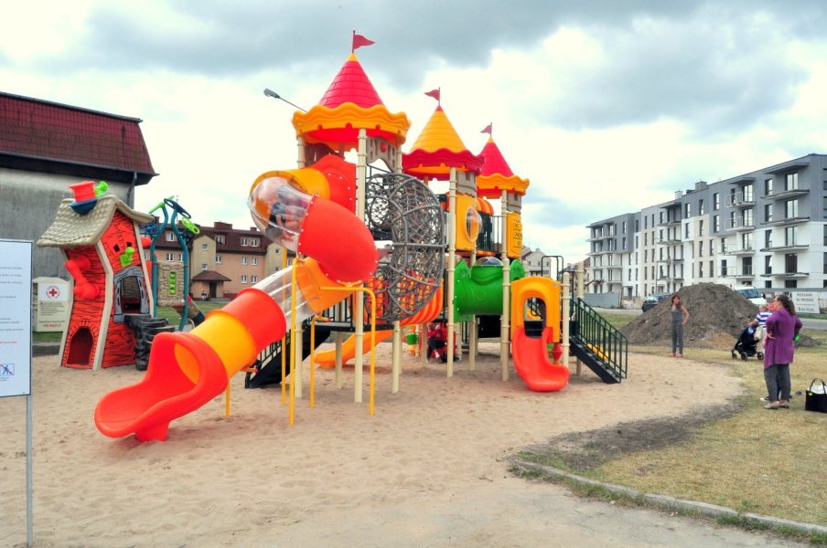 Brzydki plastikowy koszmarek. Wielka szkoda, że władze Szczytna nie stawiają na naturalne place zabaw :(