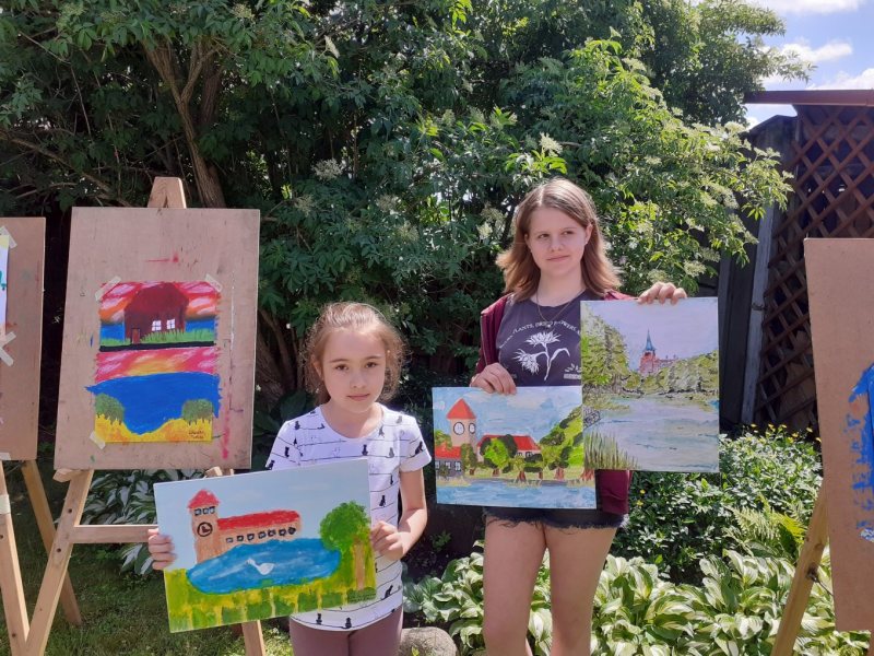 Wśród uczestników pleneru znalazły się uczennice SP 2 w Szczynie: Julia Żuchowska z kl. II B, Julia Pusta z V B, Magda Taradejna z V B oraz Julia Winiarek z VI B, które przez blisko trzy godziny malowały widok miejsca, z którym kojarzą sobie Szczytno.