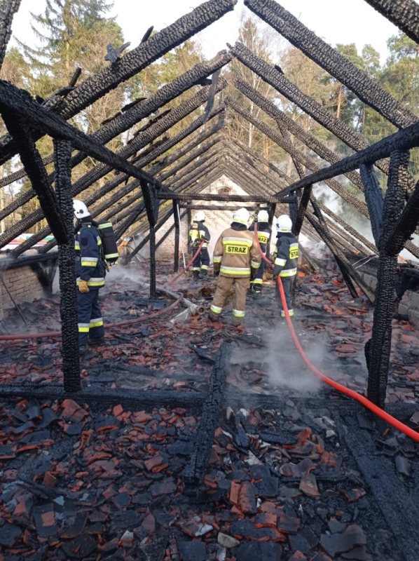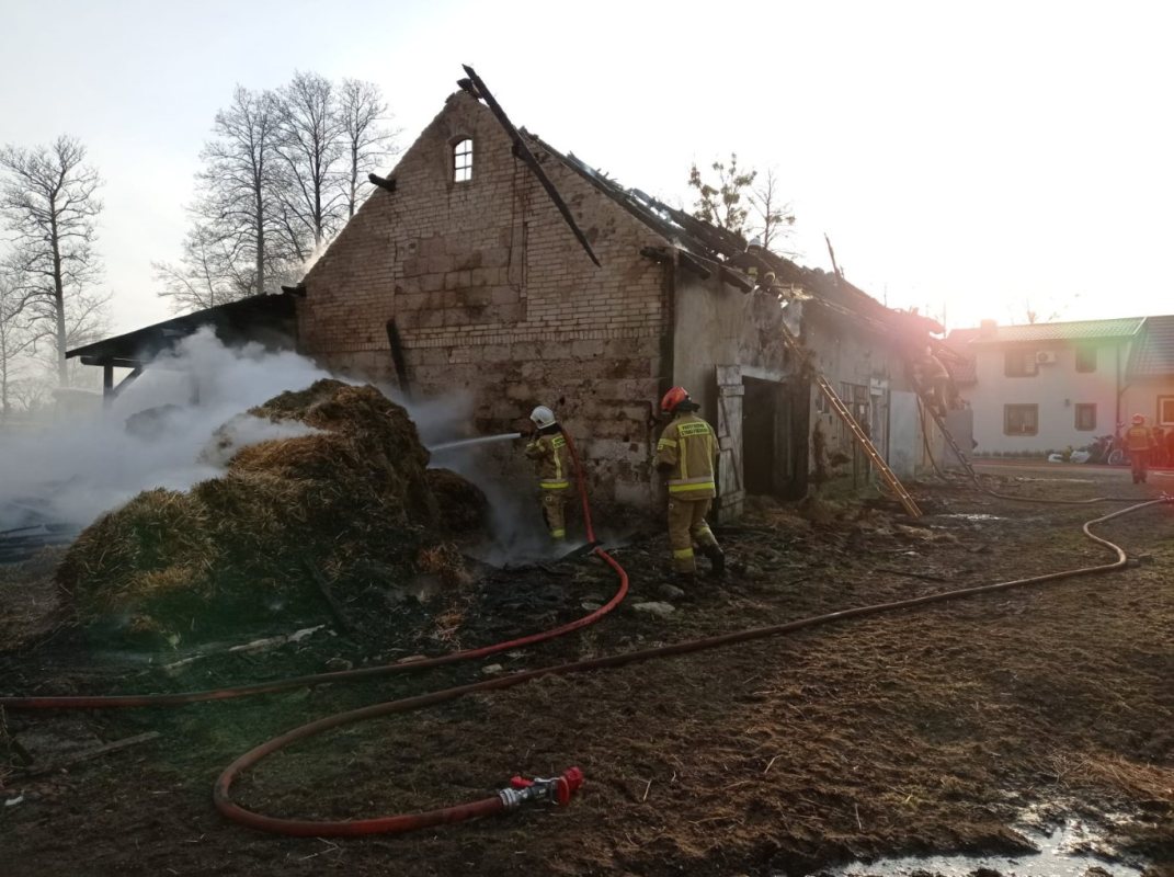 Ogień jednak szybko rozprzestrzenił na pobliską drewnianą wiatę, pod którą składowane były bele siana. Spłonęła w całości. Straty oszacowano na 103 tys. zł. Uratowane mienie to aż 200 tys. zł. Przyczyny pożaru jeszcze nie ustalono.